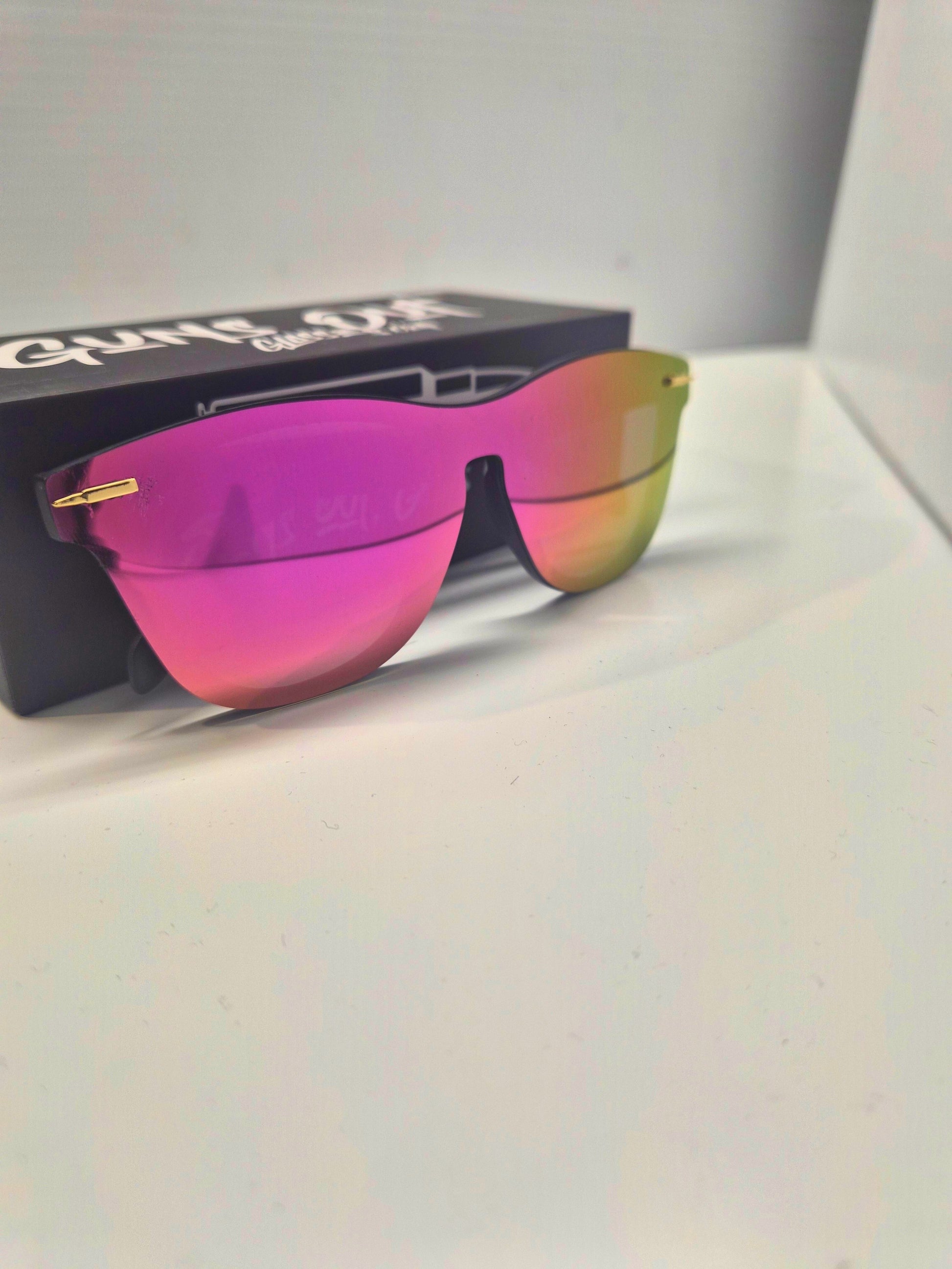Signature Branded Bullets: Make a statement with our distinctive signature GOLD bullets anchoring the lenses on. This fierce branding not only adds an aggressive flair to your look but also signals your commitment to quality and uniqueness. Stand out from the crowd—your personality deserves to be showcased with confidence!